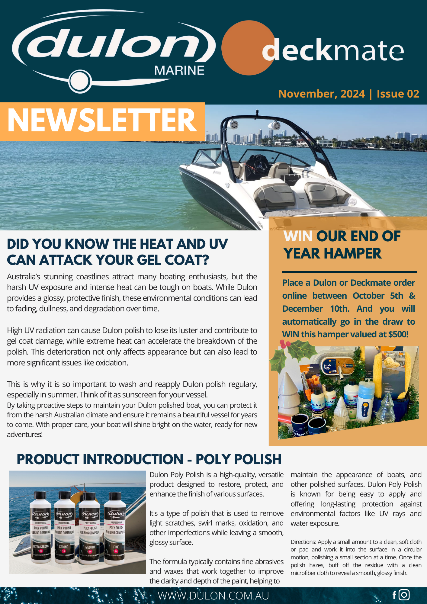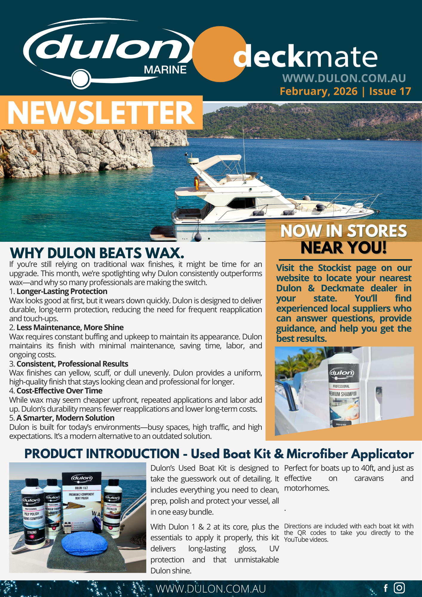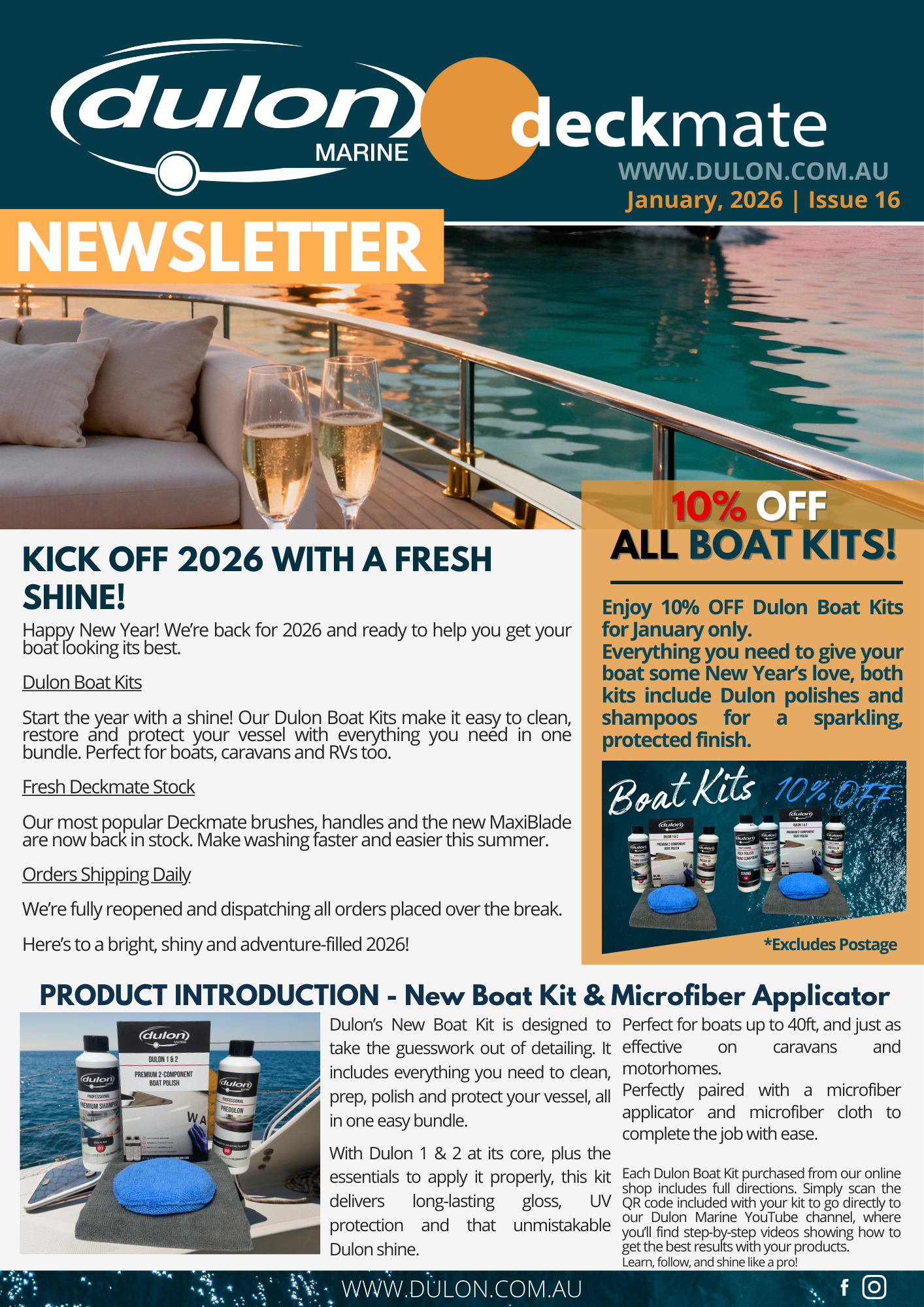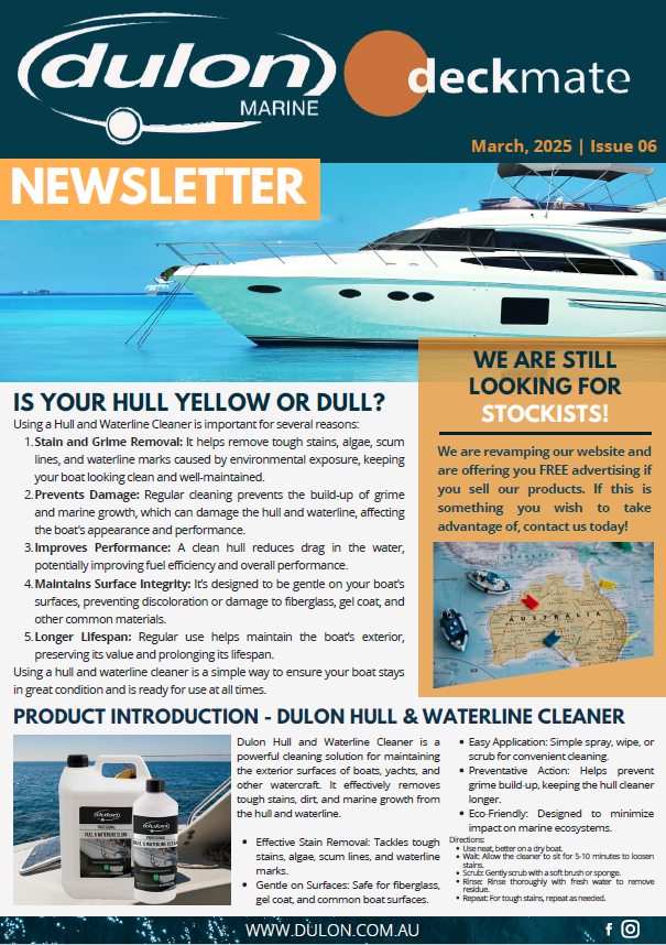 Here, you'll find all the latest updates, tips, and exclusive offers delivered straight to your inbox. Whether you're a seasoned boater or just getting started, we’ve got something for everyone. Each month, we’ll share expert advice on boat maintenance, product recommendations like Dulon Boat Shampoo, seasonal reminders, and exciting promotions you won’t want to miss.